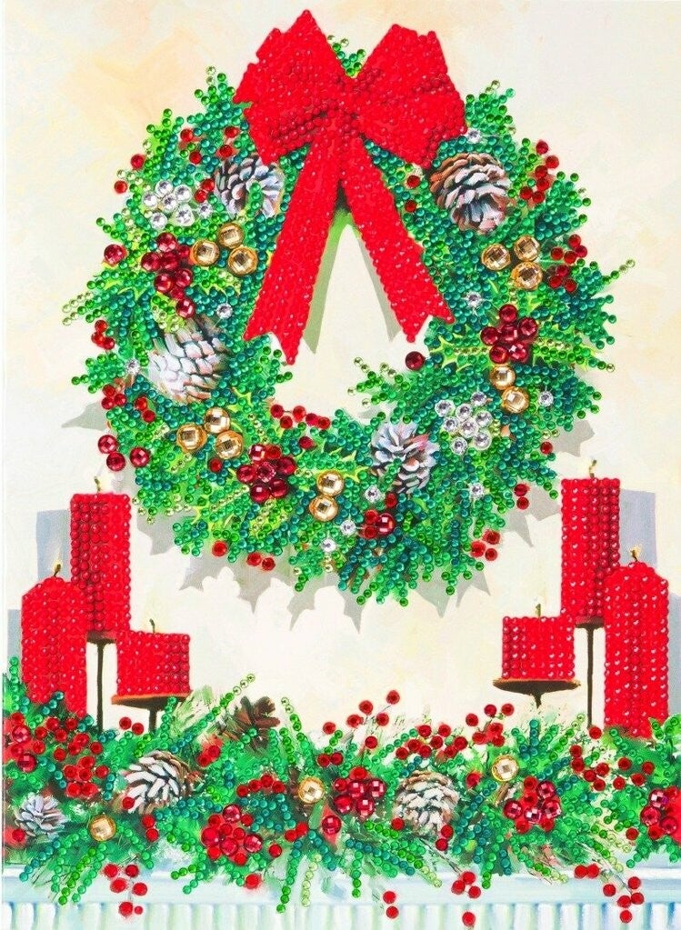 CCKXL-8 "FESTIVE WREATH", 21X29CM GIANT CRYSTAL ART CARD