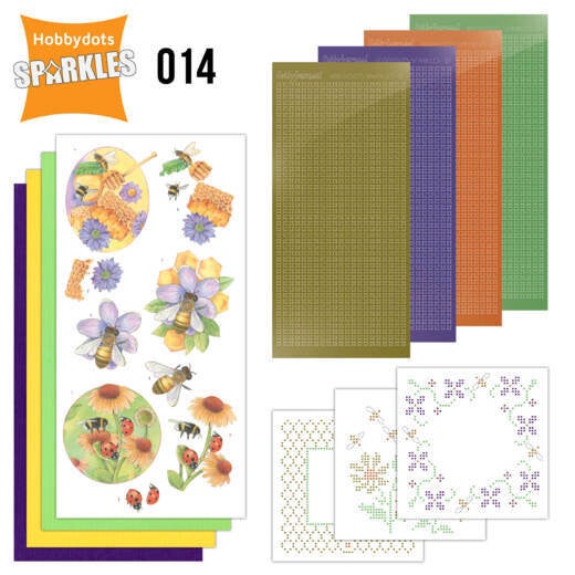 Deze handige set met Hobbydots-Sparkles bevat drie Sparkles stickervellen, drie oplegkaarten met patronen, drie 3D-afbeeldingen, drie vellen kaartkarton en 1 vel designpapier. Omdat het patroon in kleur is voorgedrukt op de oplegkaarten, kun je deze set gebruiken zonder Led Board.